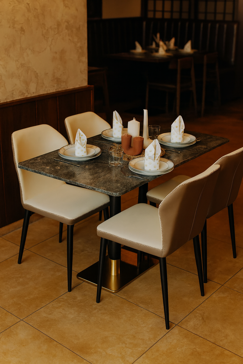- Polyvalence : table à manger , table de bureau , Restaurant , Salon de thé .