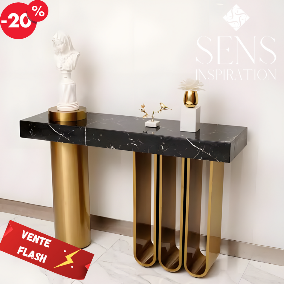 Véritable pièce maîtresse, cette console apporte une touche de prestige et de raffinement à tout intérieur. Idéale pour habiller un hall d’entrée ou un salon, la Velmora séduit par son design harmonieux et son allure luxueuse, transformant chaque espace en un lieu d’exception.