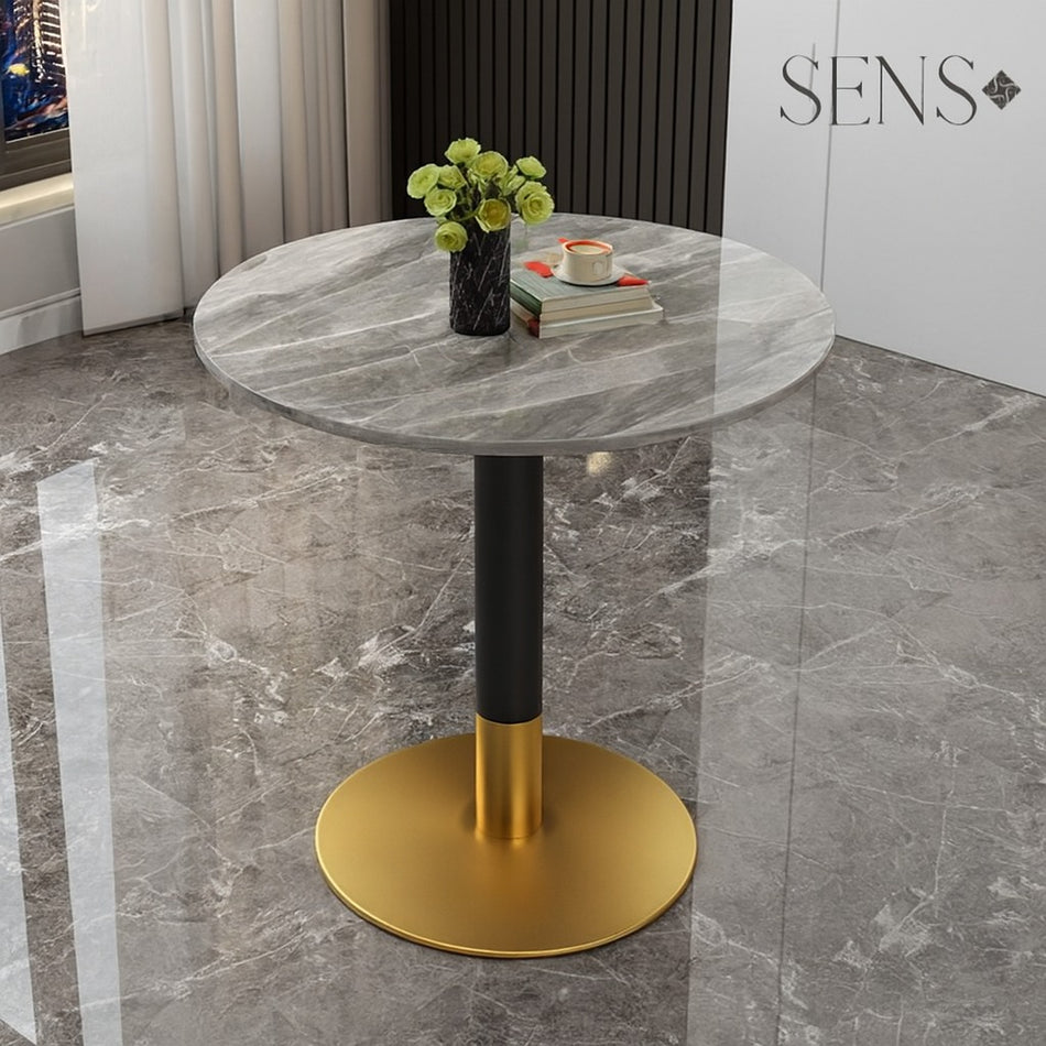 Table ronde en céramique et métal inoxydable se caractérise généralement par un plateau en céramique, reposant sur une structure en métal inoxydable.