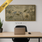 Le fond de cette toile présente une texture de manuscrit ancien et de lettres effacées, dans des tons doux. Au centre, deux petits oiseaux stylisés se perchent sur une branche, encadrés par des motifs floraux rehaussés d'or vieilli. C'est une œuvre qui apporte de la chaleur, du détail et une sophistication discrète.