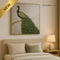 Le magnifique paon, symbole d'immortalité et de beauté, est capturé dans une pose majestueuse. Ses plumes sont rendues avec des tons riches de vert émeraude et de bleu saphir texturés. Le fond lumineux, dans des nuances argentées, met en valeur l'oiseau et confère à l'ensemble une allure royale et intemporelle.